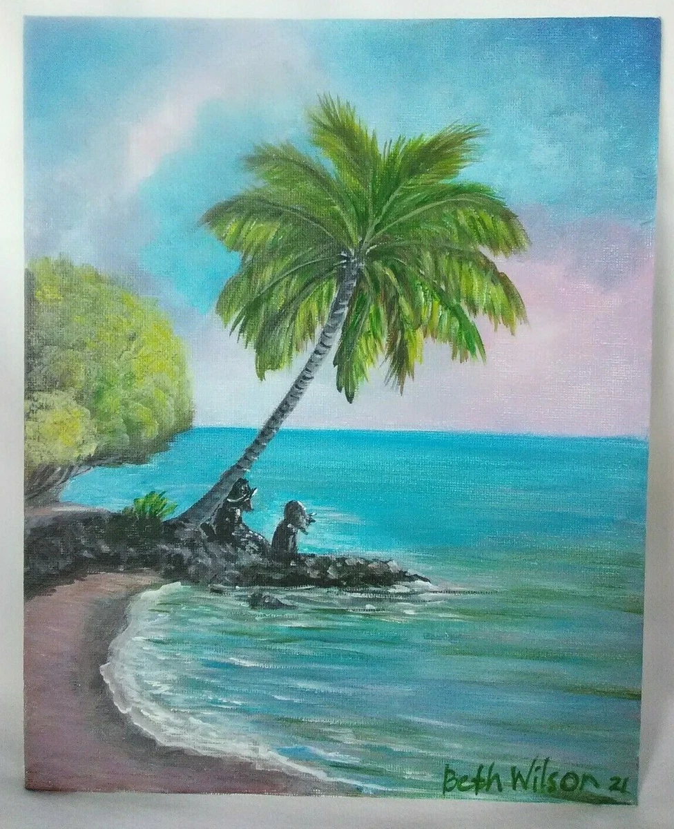 Original Acrylic Painting 8 X 10 Canvas Tropical Island Beach Cove Art Decor Ebay